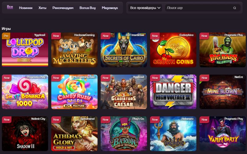 Провайдеры игрового софтаMicrogaming, Quickspin, Betsoft, Playtech, NetEnt, Pragmatic Play, Habanero, Big Time Gaming, Nolimit City, Amusnet, Tom Horn Gaming, Wazdan, Push Gaming